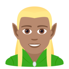 | رمزنگاری | U+1F9DD 1F3FD 200D 2642 FE0F 1F9DD - 🧝 پری دریایی 1F3FD - 🏽 پوست طلایی 2642 - ♂ نشان ناهید |